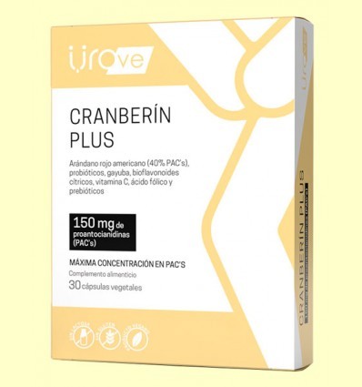 INGREDIENTES: Extracto seco de arándano rojo americano (vaccinium macrocarpon)valorado en más de 40%de proantocianidinas (PAC.s), Probióticos de última generación (Megaflora 9), extracto seco de gayuba (Arctostaphilos uva-ursi) valorado en más del 20% de arbutina, bioflavonoides cítricos valorados en más del 40% en hesperidina, vigtamina C(ácido ascórbico), ácido fólico (ácido pteroilmonoglutámico-vitamina B9). Prebióticos (fructooligosacáridos-FOS) y sustancia de carga apta para celíacos, diabéticos e intolerantes a la lactosa: estearato de magnesio vegetal.