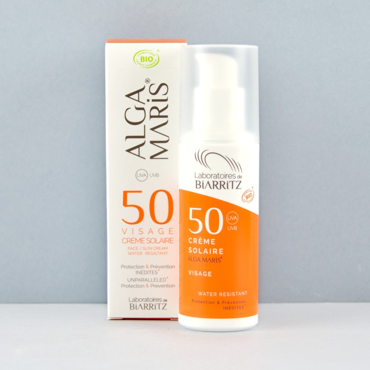 La crema solar facial SPF50 de Alga Maris Biarritz, es un protector solar orgánico que ofrece una alta protección solar natural. La presentación del producto es en un envase práctico y fácil de usar, que contiene 50 ml de crema.
