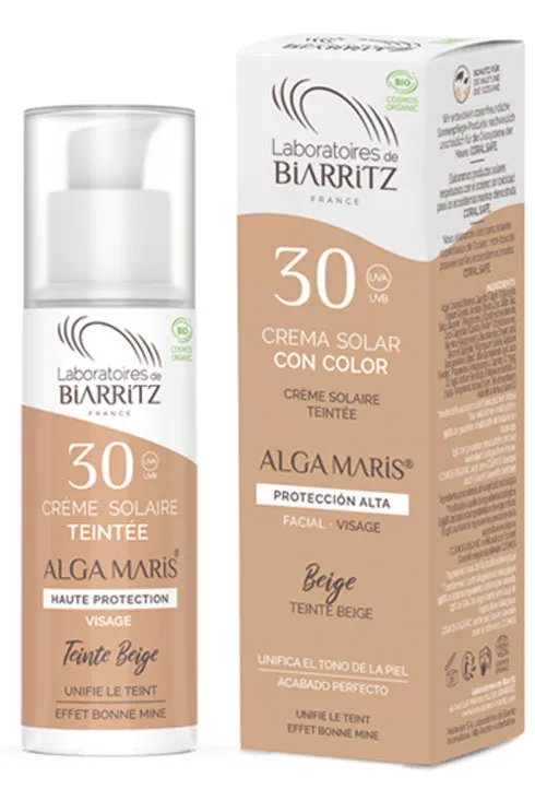 La Crema Solar Color Beige (antes color claro) SPF 30 de Alga Maris es una crema solar de uso facial que protege de forma eficaz la piel de los rayos UVA y UVB al tiempo que aporta color natural, hidratación y previenen el envejecimiento prematuro de la piel.