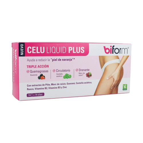 Biform Celu Liquid Plus es un complemento alimenticio que ayuda a reducir el aspecto de la piel de naranja, especialmente en las zonas más propicias como los muslos y los glúteos.