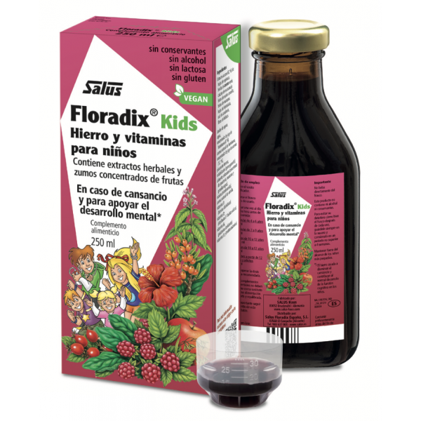 Floradix Kids se basa en el conocido Floradix y ha sido formulado para el normal desarrollo infantil. Diversos estudios reportan que niveles insuficientes de hierro apreciado en niños y jóvenes adolescentes se deben a las etapas de intenso crecimiento durante las cuales se necesita más hierro para la formación de células en general, hormonas, enzimas y para el incremento del volumen sanguíneo. Especialmente las niñas, en su fase adolescente, pueden presentar una mayor necesidad de hierro debido al inicio de la menstruación.