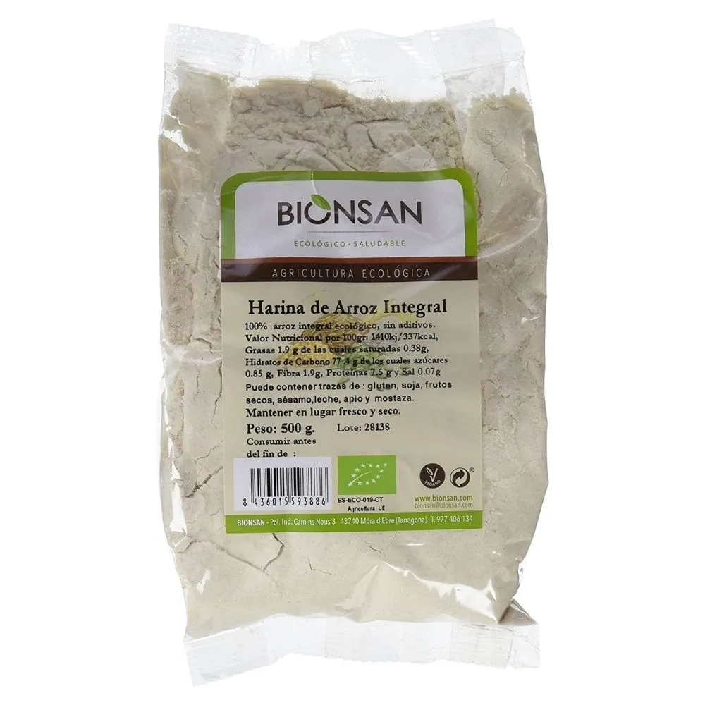 La harina de arroz integral ecológica se puede utilizar como cualquier otra harina en la elaboración de una variedad de recetas: panes, galletas, bizcochos, croquetas, salsas, y más. Gracias a sus propiedades espesantes, forma parte de muchos alimentos procesados.