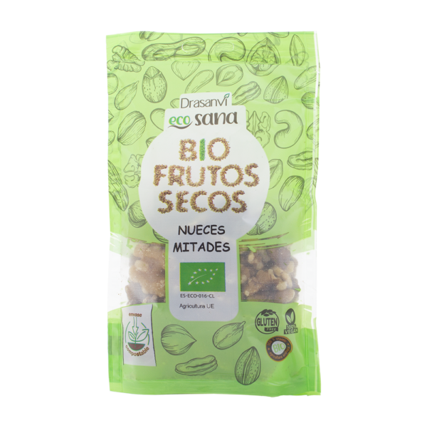 Las Nueces Bio de ECOSANA se presentan peladas y partidas a la mitad. Son 100% ecológicas, por lo que su cultivo y recolección se ha realizado siguiendo criterios que son respetuosos con el medio ambiente, sin utilizar ninguna sustancia artificial y respetando el ciclo del nogal.