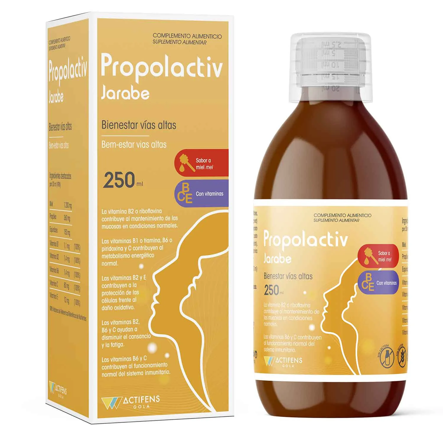 Propolactiv Jarabe constituye una excelente fórmula pensada para estimular las defensas naturales del organismo, prevenir y combatir cualquier tipo de agresión que afecte a la esfera otorrinolaringológica (ORL), ya sean enfermedades de origen infeccioso (vírica o microbiana), como gripe, resfriados, anginas, irritaciones, enrojecimientos o afonias.