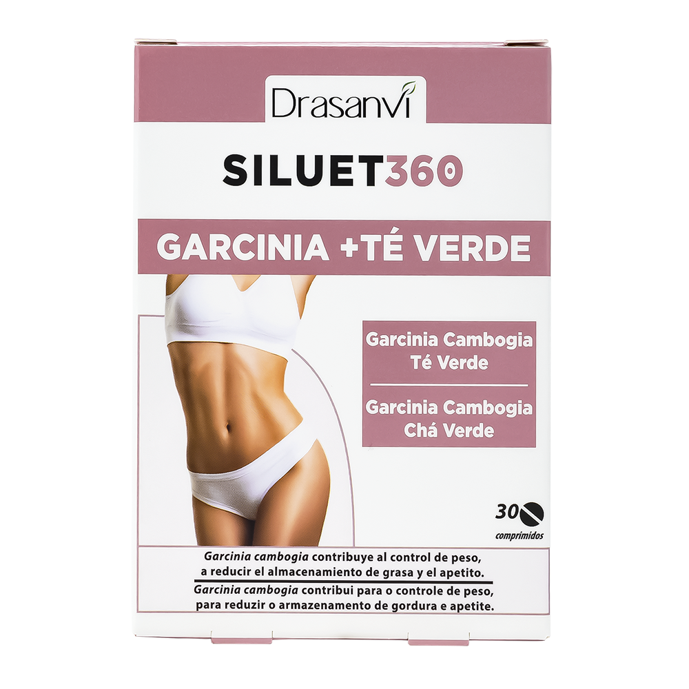 Siluet 360º Garcinia + Té Verde Drasanvi es un complemento alimenticio a base de extractos vegetales de garnicia y té verde. La garnicia cuenta con un importante nivel de apote en ácido hidroxicítrico, mientras que el té verde aporta flavonoides. Reduce el almacenamiento de grasa y reducee el apetito .
